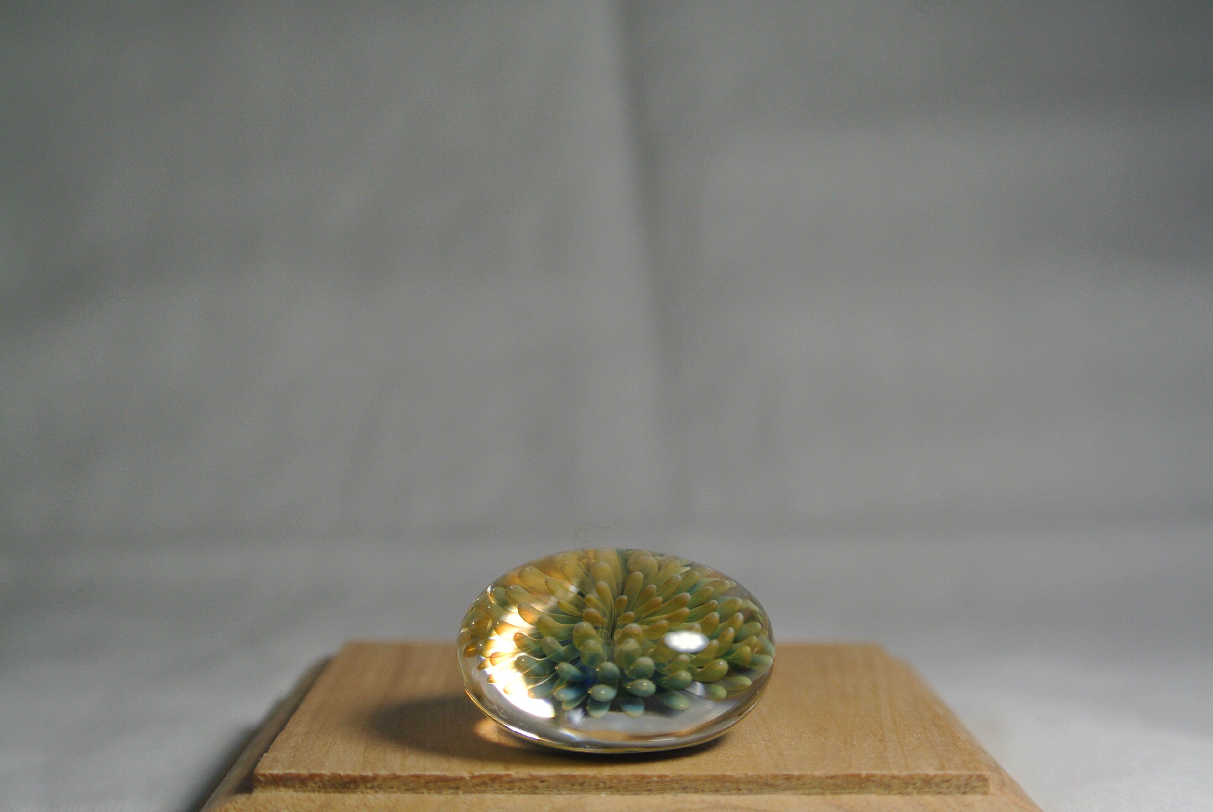 フューミング技法により彩色し、細かなドットでお花の様なペンダントに仕上げました。
