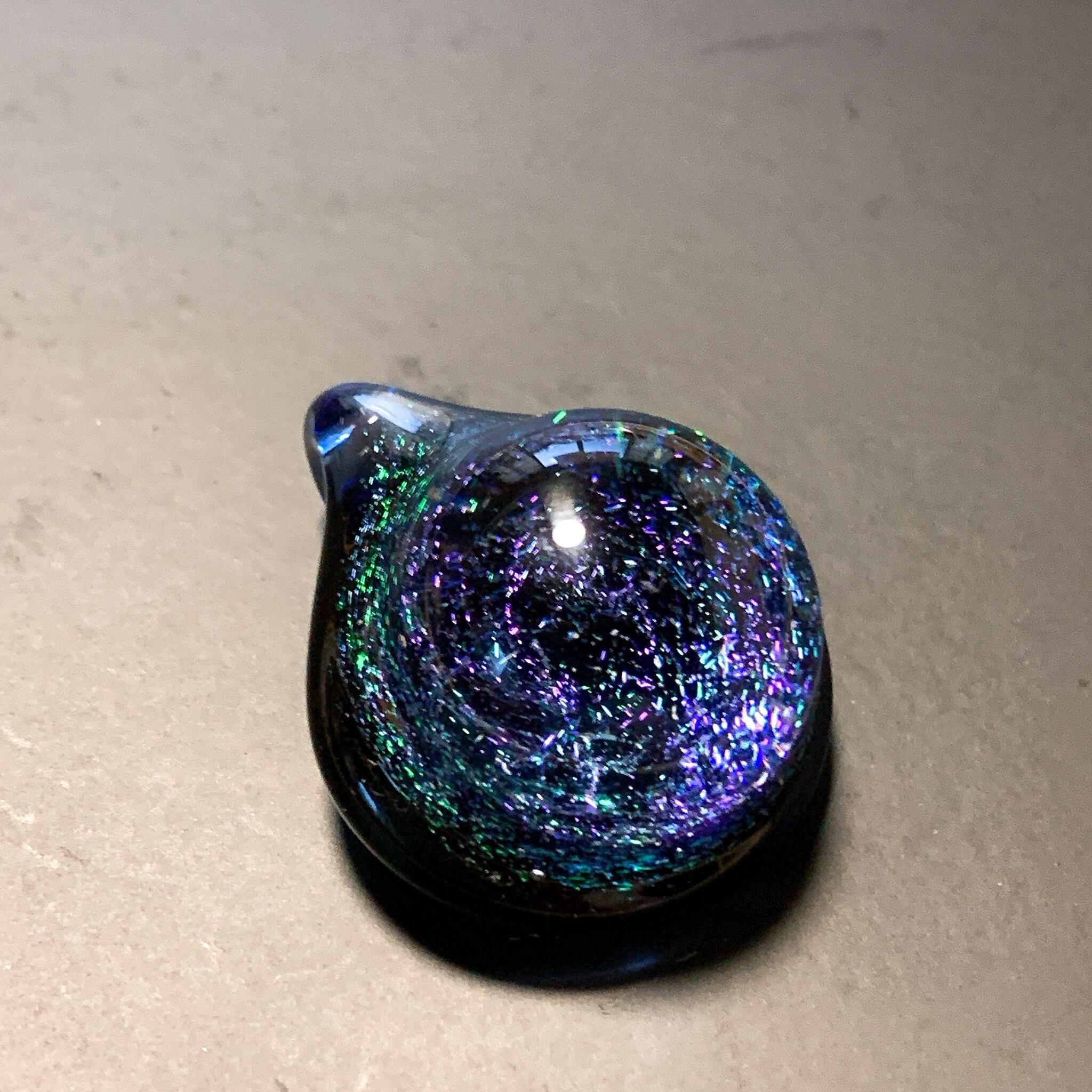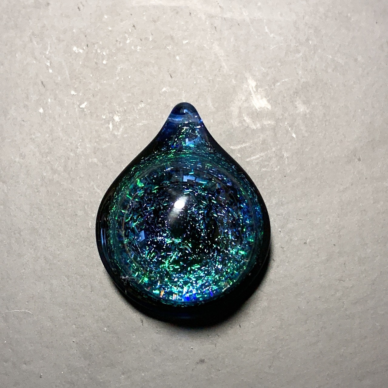 金属を蒸着させた板ガラス(ダイクロガラス)を使いペンダントを作りました